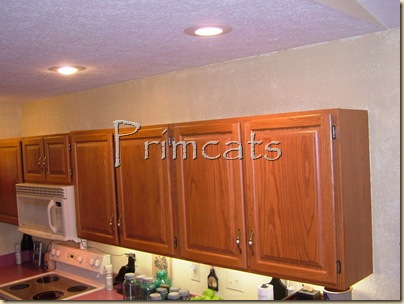 Looks great! I have that same darn area above the cabinets (what a waste of space) and don't know what to do with it. I don't have enough "stuff" to decorate up there.....yet! :)