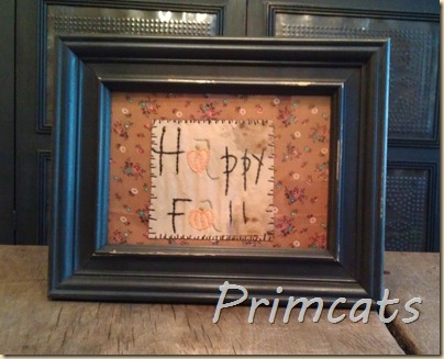 That Gizzy is too cute....nothing like a kitty cuddled up on a couch...Love your stitcheries from Linda - especially the Fall one - how primcat perfect!! Can't wait for the photos of Pumpkin Hoarders: Buried Alive! Have a wonderful day!! Smiles & Hugs ~ Robin